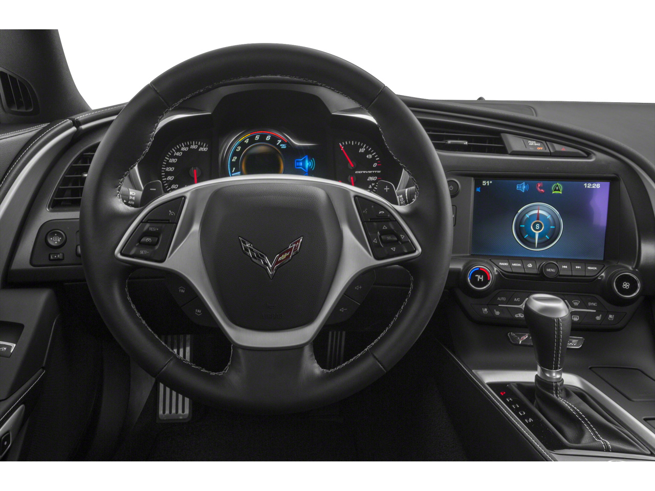 This unit keeps you comfortable with Auto Climate. This Chevrolet Corvette features a high end BOSE stereo system. Protect the Chevrolet Corvette from unwanted accidents with a cutting edge backup camera system. Set the temperature exactly where you are most comfortable in this unit. The fan speed and temperature will automatically adjust to maintain your preferred zone climate. Easily set your speed in this 2015 Chevrolet Corvette with a state of the art cruise control system. Increase or decrease velocity with the touch of a button. Electronic Stability Control is one of many advanced safety features on this small car. The vehicle has a V8, 6.2L high output engine. This 2015 Chevrolet Corvette projects refinement with a racy metallic gray exterior. This 2015 Chevrolet Corvette features a hands-free Bluetooth® phone system. The leather seats in this unit are a must for buyers looking for comfort, durability, and style. With the adjustable lumbar support in this model your back will love you. You'll never again be lost in a crowded city or a country region with the navigation system on this small car. This small car is outfitted with an OnStar communication system. This small car is accented with a stylish rear spoiler. Small and nimble it scoots through traffic. It offers great fuel mileage and ease of parking.
