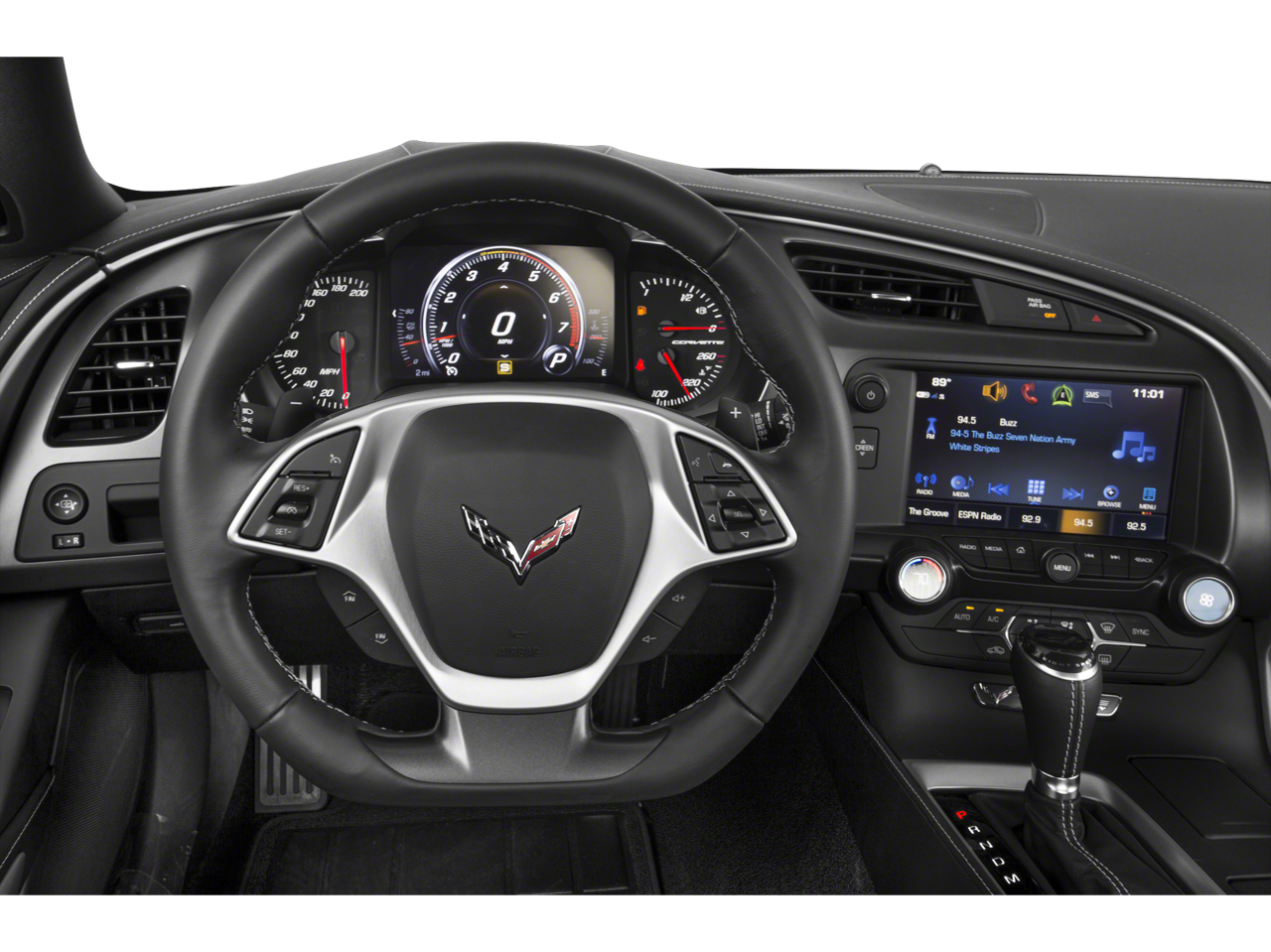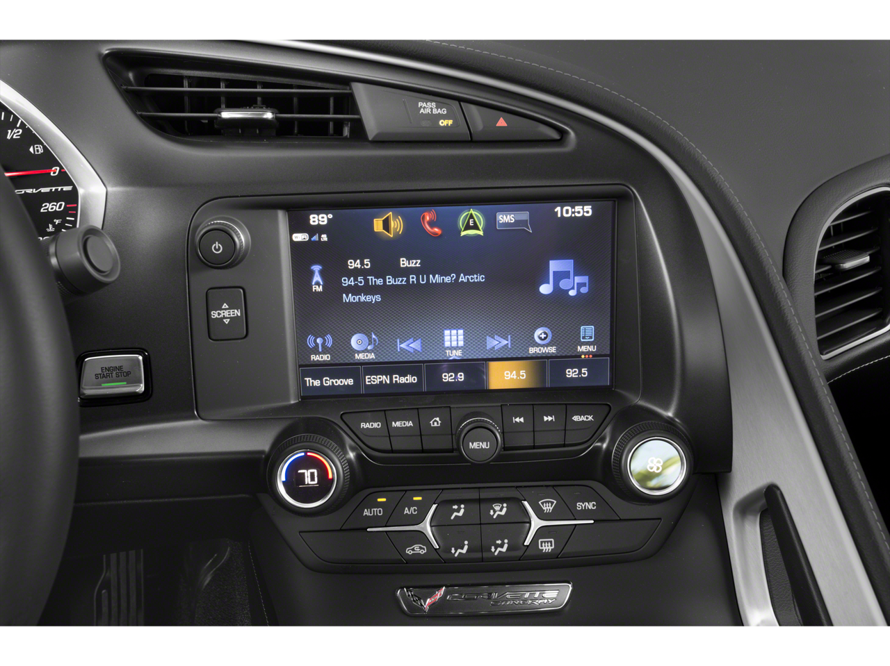 It offers Android Auto for seamless smartphone integration. Apple CarPlay: Seamless smartphone integration for this unit - stay connected and entertained on the go! The vehicle keeps you comfortable with Auto Climate. Engulf yourself with the crystal clear sound of a BOSE sound system in it. See what's behind you with the back up camera on the Chevrolet Corvette Stingray. This unit is painted with a sleek and sophisticated black color. Maintaining a stable interior temperature in it is easy with the climate control system. Easily set your speed in this model with a state of the art cruise control system. Increase or decrease velocity with the touch of a button. Electronic Stability Control is one of many advanced safety features on this vehicle. This 2019 Chevrolet Corvette Stingray has a V8, 6.2L high output engine. Bluetooth® technology is built into it, keeping your hands on the steering wheel and your focus on the road. The leather seats in this small car are a must for buyers looking for comfort, durability, and style. The installed navigation system will keep you on the right path. Start this small car from inside with remote start. This small car is easy to park.
