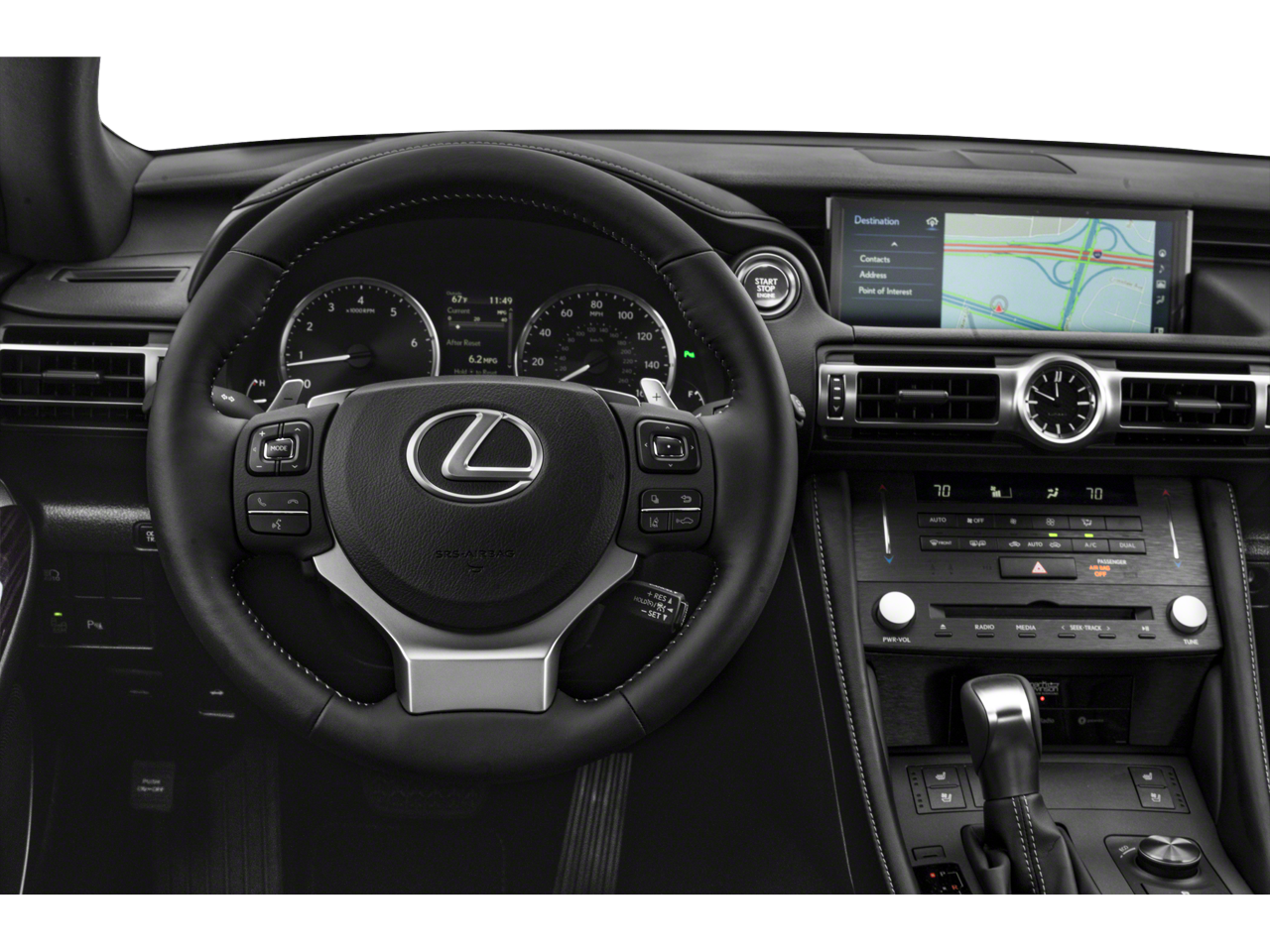 See what's behind you with the back up camera on this small car. The Lexus RC 350's blind spot monitor enhances safety. This vehicle features a hands-free Bluetooth® phone system. You'll never again be lost in a crowded city or a country region with the navigation system on the Lexus RC 350. This model is pure luxury with a heated steering wheel. The rear parking assist technology on this Lexus RC 350 will put you at ease when reversing. The system alerts you as you get closer to an obstruction. This model offers Automatic Climate Control for personalized comfort. The leather seats in this 2019 Lexus RC 350 are a must for buyers looking for comfort, durability, and style. Start this small car from inside with remote start. The Lexus RC 350 has an elegant black exterior finish. Maintaining a stable interior temperature in this Lexus RC 350 is easy with the climate control system.