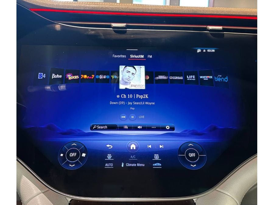 - Radio: Burmester 3D Surround Sound System -inc: Dolby Atmos, EQ sound experience and sound personalization, MBUX hyperscreen w/17.7" OLED central display and 12.3" OLED passenger display, SiriusXM satellite radio w/trial period, MBUX augmented reality for navigation, fingerprint scanner for MBUX profile authentication and wireless smartphone integration (Apple CarPlay and Android Auto)