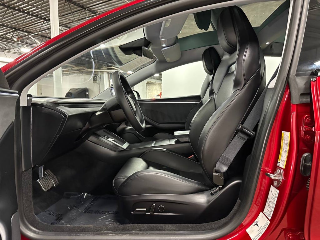 Protect this Tesla Model 3 from unwanted accidents with a cutting edge backup camera system. Set the temperature exactly where you are most comfortable in it. The fan speed and temperature will automatically adjust to maintain your preferred zone climate. Easily set your speed in this unit with a state of the art cruise control system. Increase or decrease velocity with the touch of a button. It has a Electric Motor high output engine. Keep your hands warm all winter with a heated steering wheel in this large car . Relax on the road in this this model. This large car is great for more passenger room and comfort. The luggage space is sure to fit all your bags. The leather seats in this vehicle are a must for buyers looking for comfort, durability, and style. With the adjustable lumbar support in this vehicle your back will love you. You'll never again be lost in a crowded city or a country region with the navigation system on it. This vehicle gleams with a flashy red exterior.