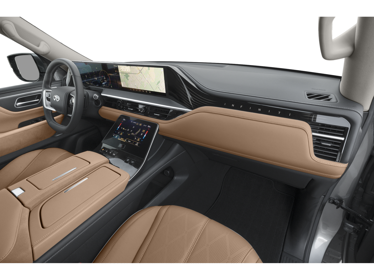- Radio: Klipsch Reference Premiere Audio System -inc: 24-speakers, 3D audio, Active Sound Enhancement (ASE), demo mode, individual audio headrest speakers for driver and front passenger, INFINITI InTouch services, 4G Wi-Fi hotspot, dual 14.3" infotainment screens w/9" front control panel, Google built-in w/navigation, Amazon Alexa built-in w/hotword, Bluetooth® hands free phone and audio streaming, wireless Apple CarPlay and Android Auto, hybrid radio, SiriusXM w/360L (3-month trial included) and 2 USB type-C ports
