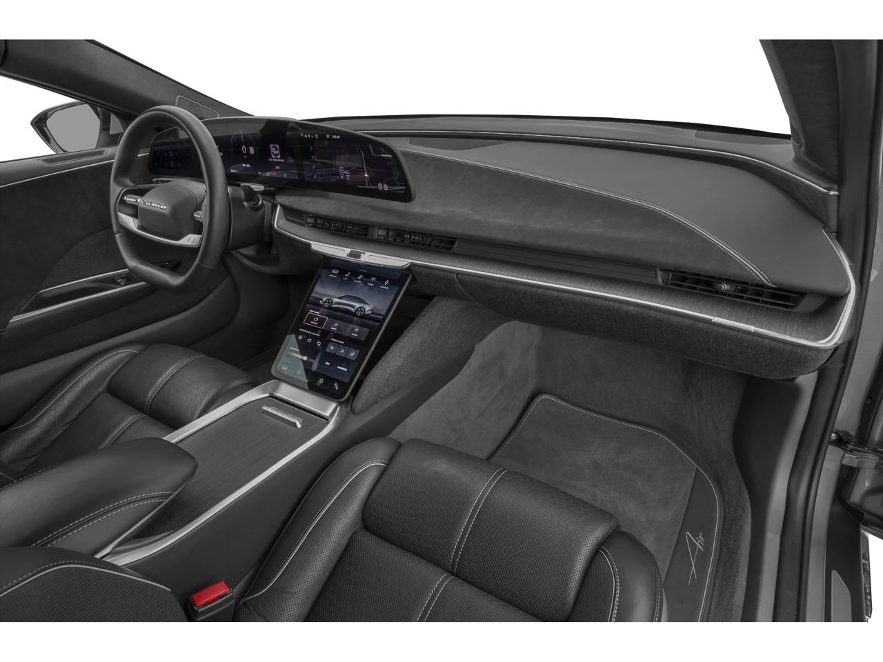 - Radio: AM/FM/HD w/Surreal Sound Audio -inc: 9 speakers, 34" glass cockpit center information driver display, 12.5" power-retractable pilot panel touchscreen display, native support for streaming apps (Spotify, iHeartRadio, TuneIn, Pocket Casts and Tidal), speed-sensing automatic volume control, Lucid assistant voice control system, USB-A and USB-C ports in front seats and Bluetooth® wireless technology